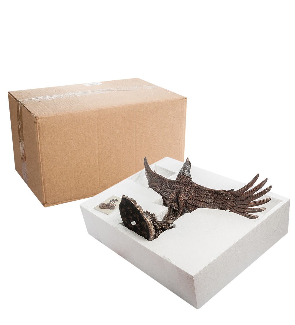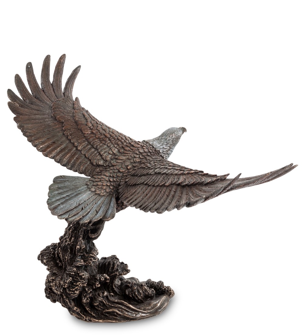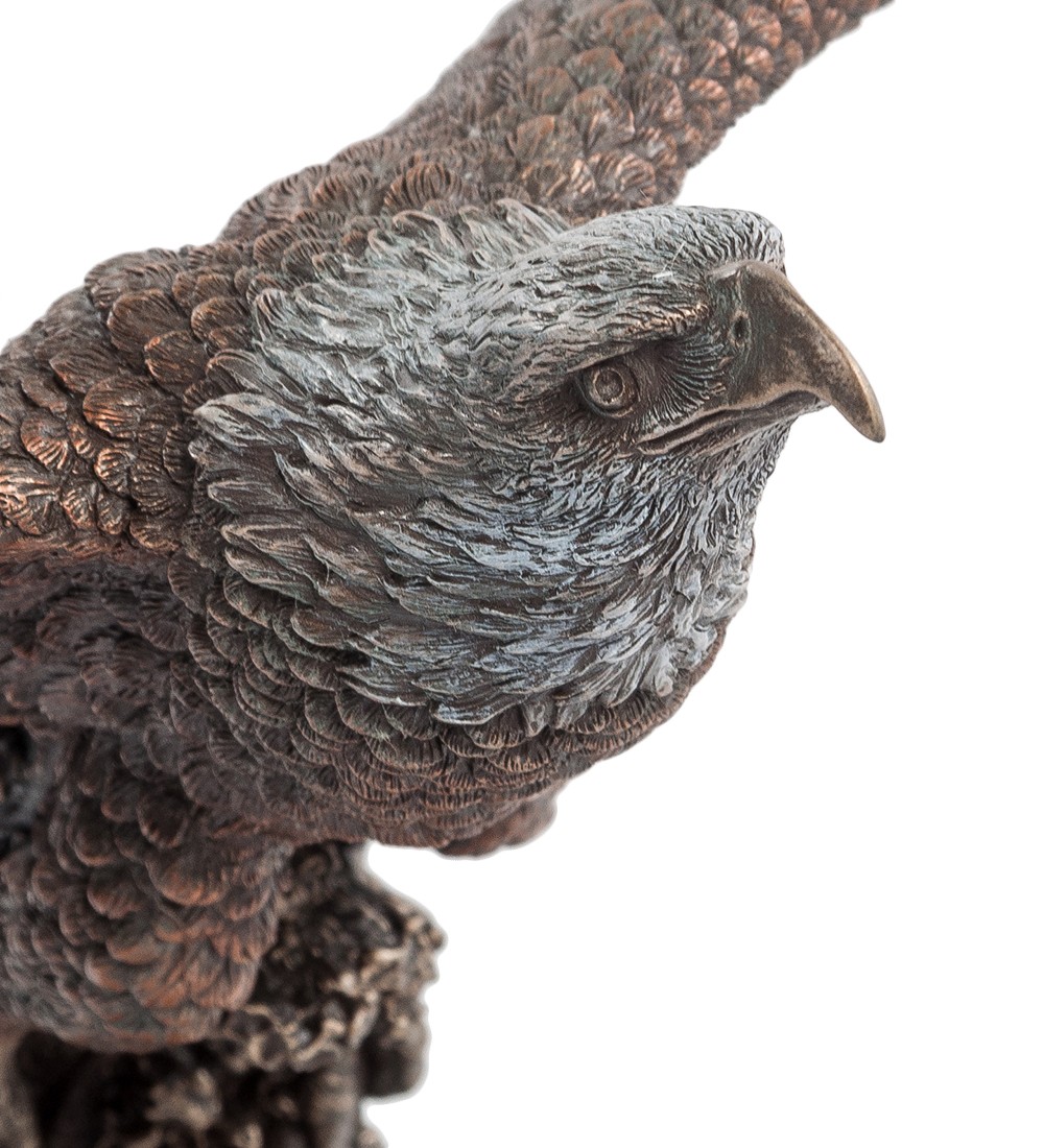 Статуэтка ''Орел'', высотой 33 см. Орел символизирует духовное начало, победу, гордость, власть и силу. Считалось, что орел может долететь до солнца, в связи с этим он олицетворял духовное начало в человеке, способное взмыть к небесам. Статуэтка орла – идеальный подарок для мужчины. По Фэн-шуй она предназначена в доме для увеличения энергии мужества и отваги, силы и храбрости, ведь именно этими качествами наделена птица. Орёл – повелитель небес, птица величественная и гордая, бесстрашная и сильная. Если подарить в подарок такую статуэтку, значит, пожелать мужчине достижения высоких результатов в карьере, больших побед, успехов в жизни и быть сильным во всём. Энергия орла очень мощная, такую статуэтку рекомендуют ставить в кабинете мужчины, где он постоянно работает. Это поможет принять правильное решение в бизнесе, рисковать и выигрывать, добиваться поставленных целей. Статуэтка из полистоуна выполнена очень качественно. Четко передан взгляд птицы, устремлённый вперед — в когтях у него добыча. Орёл величественно расправил свои крылья и собирается улететь. Очень грамотно и качественно проработана каждая деталь фигуры – перья, как настоящие, линии выделяют крупные и мелкие детали. Такая статуэтка в кабинете принесёт мужчине заслуженный успех, хорошую репутацию и поможет реализоваться в карьере. Птица подходит в качестве подарка для руководителей, бизнесменов, военных и для всех мужчин, которые не сидят, сложа руки, а упорно идут к поставленной цели.
