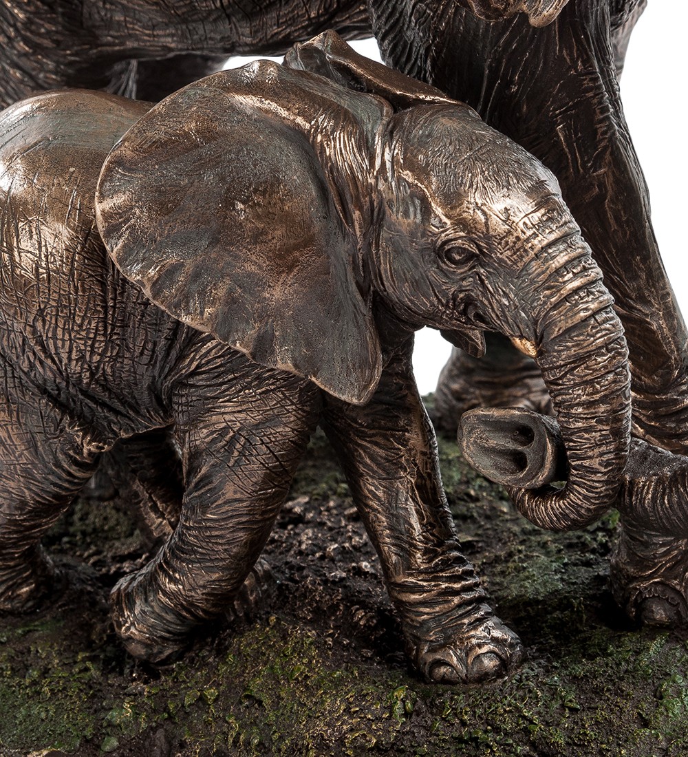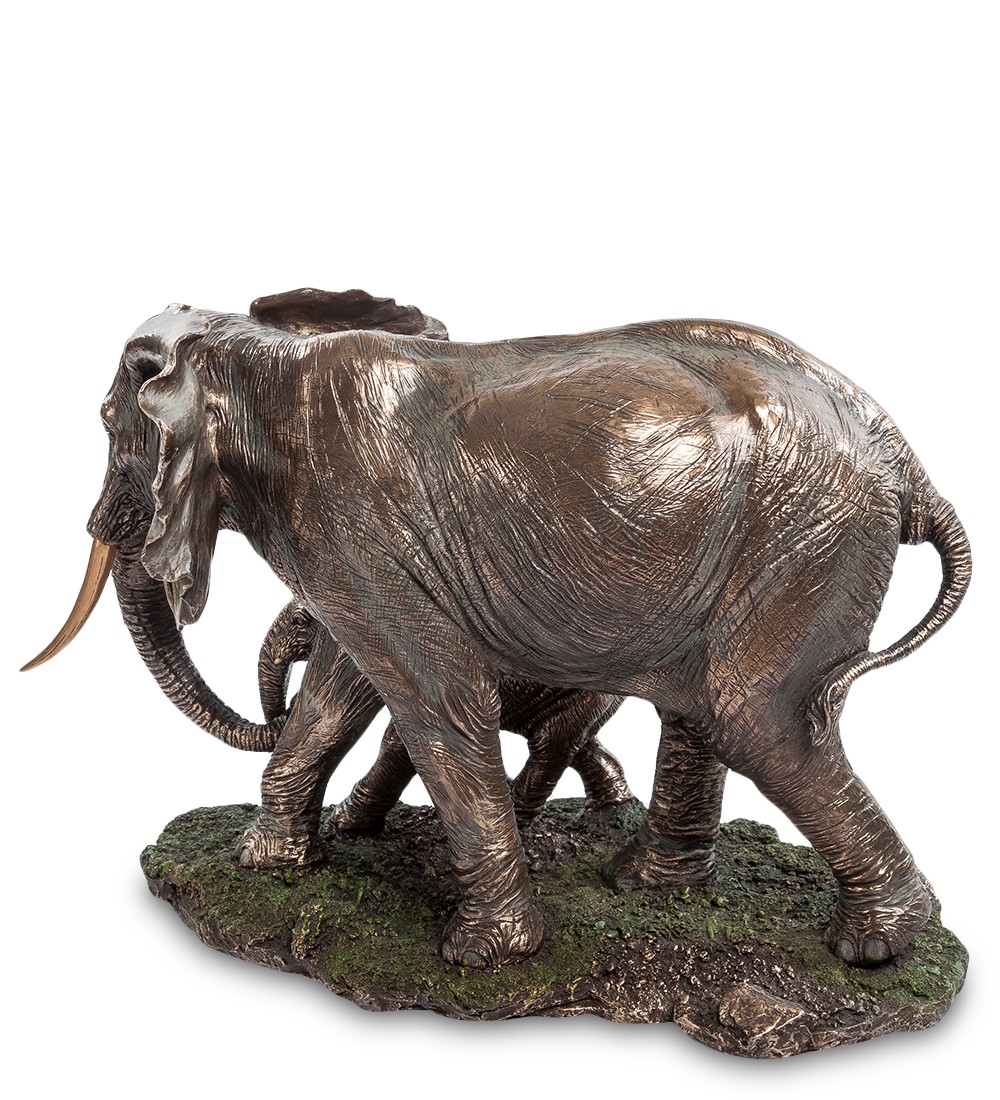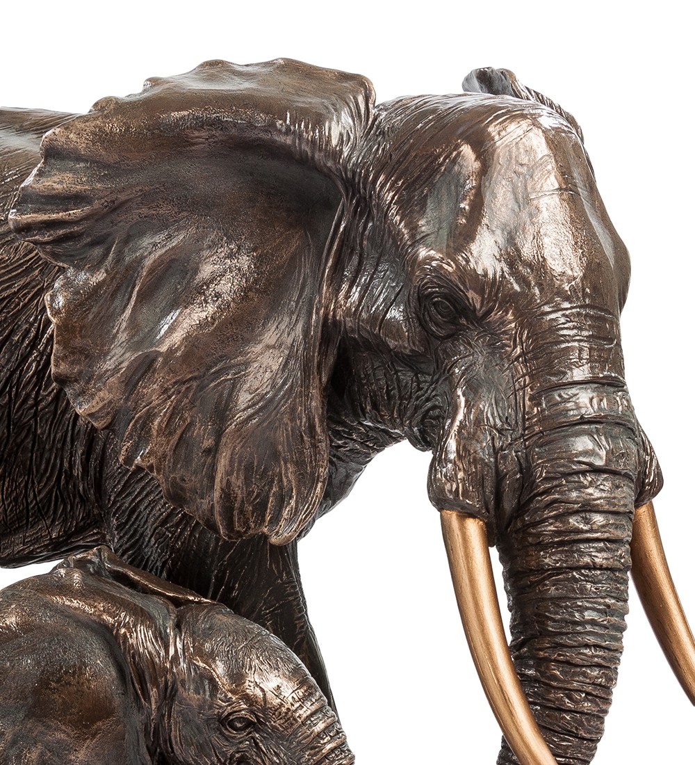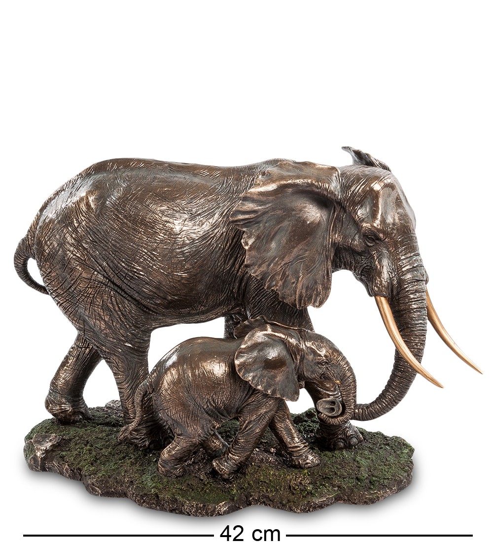 Статуэтка ''Слон с детенышем'', высотой 27,5 см. Слон – древнейшее животное, которое является предком мамонтов. Никто до конца так и не изучил природу повадок и жизнедеятельности этих гигантских созданий, которые, кажется, созданы совсем не для этой планеты. Их габариты совсем не являются показателями агрессивности или негативного отношения к жизни. Из всех млекопитающих слоны являются практически самыми миролюбивыми и добрыми созданиями, которые всегда готовы идти на контакт с людьми, заботиться о своем потомстве и взаимодействовать с природой. Статуэтка «Слон с детенышем» из высококачественного полистоуна отлично передает атмосферу саванны, взаимопонимание между слоненком и его матерью и семейную идиллию. Подрастающее потомство в стаде слонов воспитывается коллективно, все в группе обязаны защищать детенышей, независимо от того, есть ли среди них свои или чужие. Такие правила сохраняют популяцию слонов и сегодня, позволяют нам наблюдать за этими удивительными животными и их межличностными отношениями.