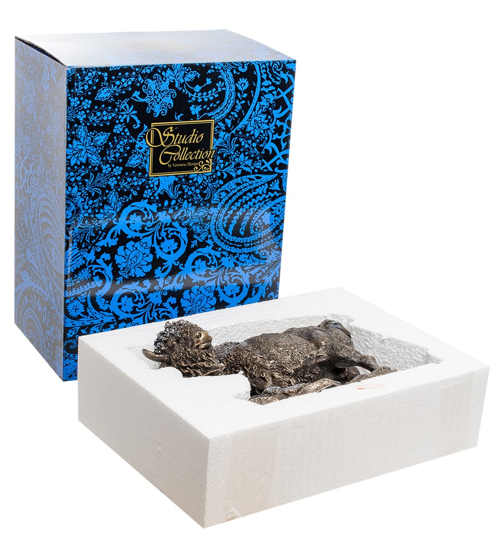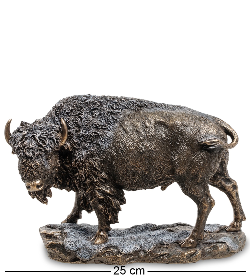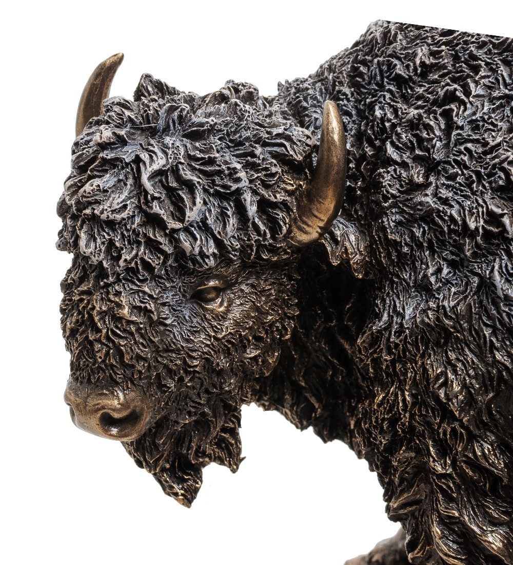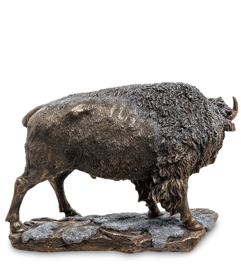 Статуэтка ''Бизон'', высотой 18 см. Бизоны очень похожи на европейских зубров, поэтому ряд ученых предполагает, что бизоны не составляют отдельного вида, а являются лишь видоизменением зубра .Взрослые особи могут достигать в длину 2,5-3 метра и в высоту до 2 метров. Густая шерсть покрывает голову, горб, шею и часть передних ног бизона. Эти животные были главным объектом охоты у индейцев североамериканских прерий. Мясо убитого бизона шло в пищу, а выделанная шкура применялась в строительстве жилищ и для пошива одежды.