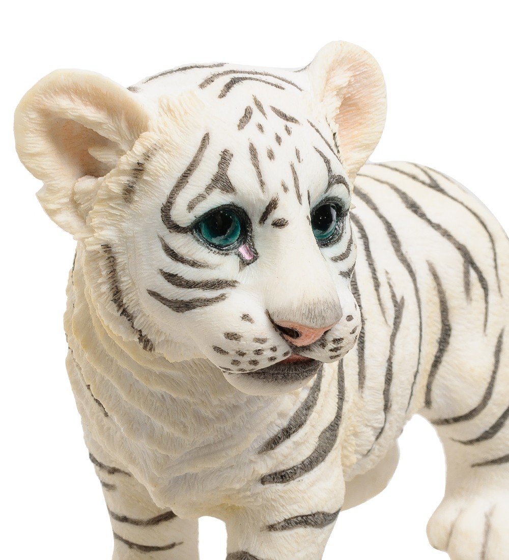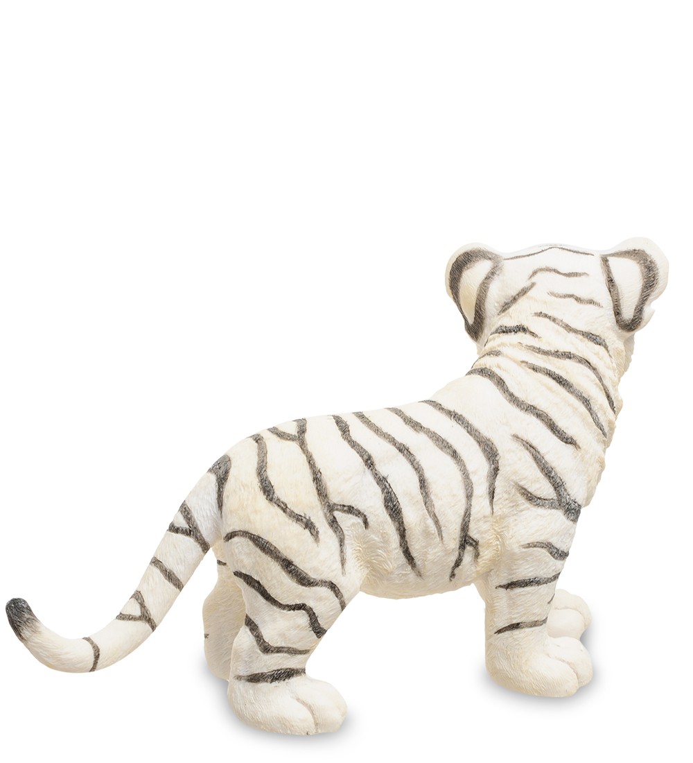 Статуэтка ''Белый тигренок'', высотой 15,5 см. Тигр - один из самых крупных наземных хищников. По массе уступает только бурому и белому медведям. А тигрята рождаются беспомощными и слепыми, массой всего 1,3-1,5 кг. Малышей растят мамы, оберегая их от самцов, способных убить тигрят. К самостоятельной жизни тигрята готовы уже к 18 месяцам, но до пяти лет могут оставаться с мамой. Отцы не принимают участия в воспитании подрастающего поколения.