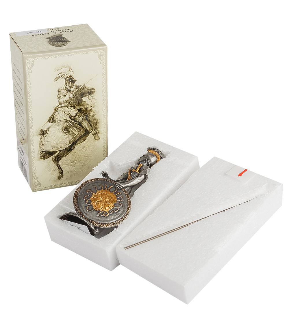 Статуэтка ''Римлянин'', высотой 10,5 см. "Намерение воина сильнее любых препятствий." Карлос Кастанеда Римская империя – одно из самых известных античных государств, которое на протяжении своего существования провело множество военных компаний. Война невозможна без воюющих армий; о том, как выглядел римский воин, можно узнать, взглянув на фигурку «Римлянин», изображающей античного итальянца в полном боевом вооружении, существовавшем две с половиной тысячи лет назад. На голове римского воина красивый, изящный металлический шлем, защищающий голову и часть лица. На теле – легкие металлические доспехи, прикрывающие спину и грудь, а у левой руки – меч. В правой руке воина находится длинное тонкое копье с острым наконечником, в левой – огромный круглый щит, украшенный античным орнаментом и старинным изображением солнца. Ноги пехотинца также защищены латами, а на стопах – легкие походные сандалии. Фигурку «Римлянин» можно приобрести и использовать для украшения любой из комнат, обставленной в старинном или антикварном стиле, или же подарить знакомому военачальнику на день рождения или юбилей.
