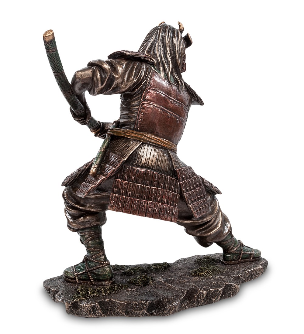 Самураи - светские феодалы и древней Японии, являлись телохранителями своего сюзерена (феодального правителя), и в то же время его слугами в повседневной жизни. Кодекс поведения самурая «Бусидо» был проникнут духом беспрекословного подчинения господину и презрения к смерти. За последние 50 лет Голливудом и восточными студиями снято множество лент, посвященных самураям. В большинстве случаев перед нами предстают современные воины, которые, по сути, являются наемниками, и к традиционному сословию самураев прямого отношения не имеют. Изначально самураем называли слугу верховного правителя и владельца большой территории; самурай - вассал, защищающий порядок и уклад жизни средневековой Японии, был обязан сражаться до последней капли крови, отдавая все во спасение господина и его собственности, презирая полученные в бою ранения и смерть. Статуэтка «Самурай», сделанная из полистоуна, изображает средневекового феодала во время боя. Он хорошо экипирован: его ноги, тело и плечи защищены от ударов меча противника легкими латами-доспехами. На голове самурая – красиво выполненный старинный шлем, украшенный черепом буйвола. Самурай готов к схватке с врагом и вот-вот обнажит острый меч, покоящийся в изящно украшенных резьбой ножнах. Фигурку «Самурай» можно поставить на стол: она будет напоминать, что к бою нужно быть всегда готовым. Статуэтку в старинном стиле также можно подарить другу, который любит восточную культуру или увлекается боевыми искусствами.