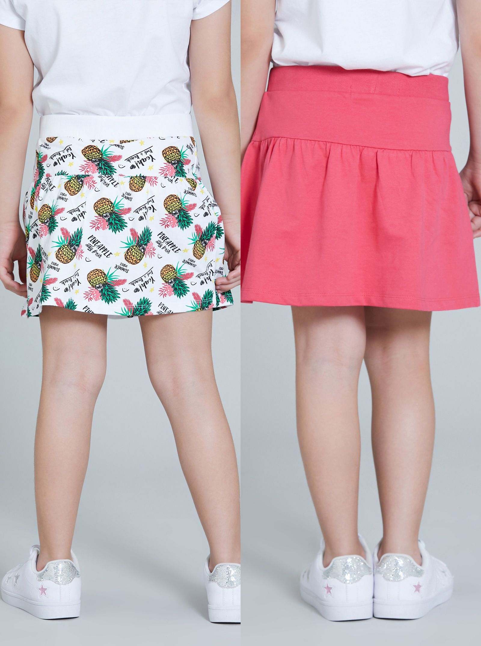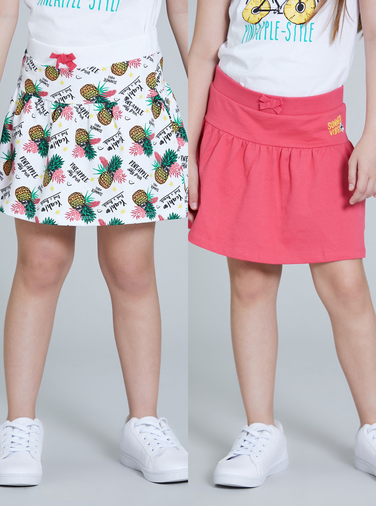 Комплект из двух узорчатых юбок для девочек с эластичным поясом с прикладным бантиком.