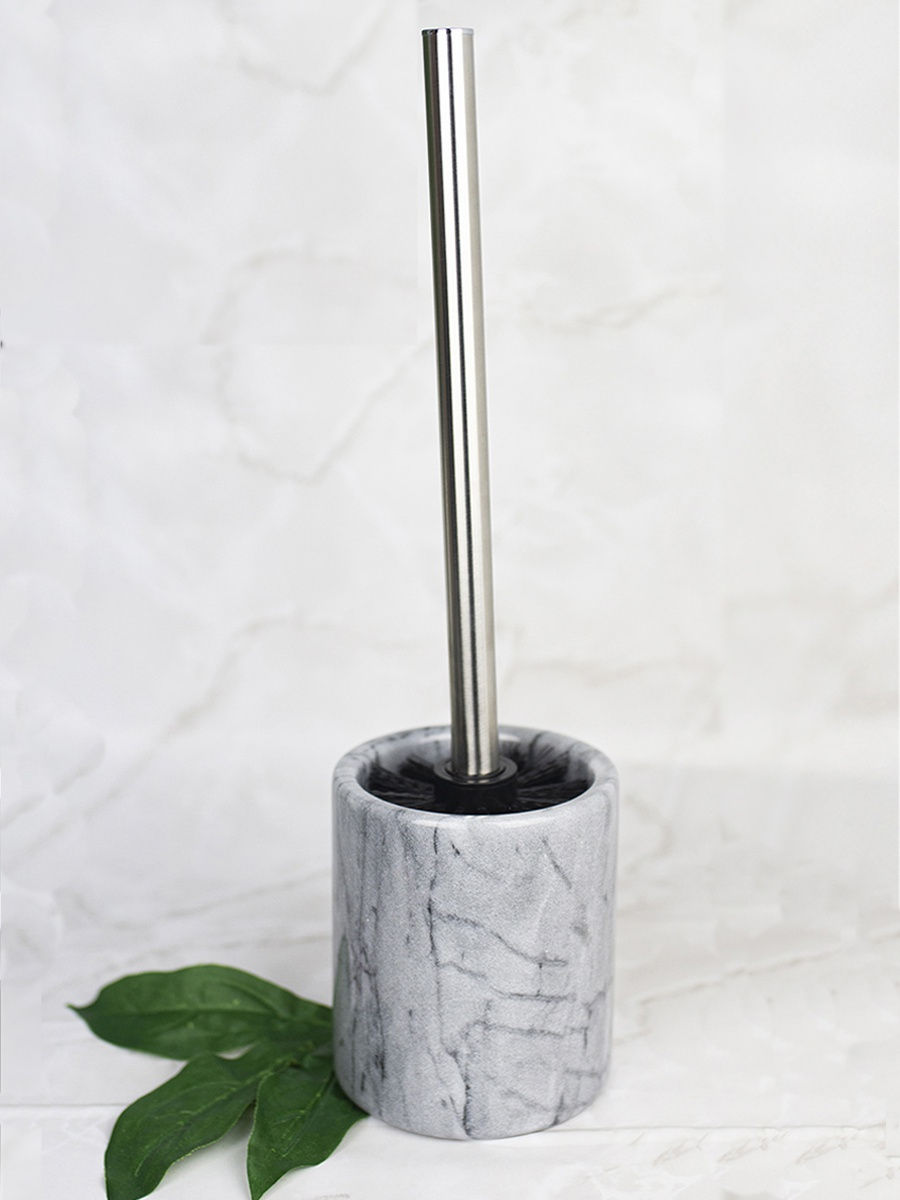 Ершик для унитаза \"Grey Marble\" с чашей из натурального МРАМОРА - это необходимая вещь в ванной комнате для всех, кто ценит настоящий комфорт, порядок и красоту. Любая мелочь при оформлении интерьера ванной комнаты может добавить изюминку и уют. А изысканная серия аксессуаров для ванной \"Grey Marble\" ещё и практичная, так как выполнена из влагостойкого материала, что обеспечивает им долговечную службу. Изготовлен ерш из устойчивых к воздействию бытовых химических средств материалов: мрамор и металл. Ерш можно приобрести вместе с другими аксессуарами из серии \"Grey Marble\", собрав единый по цвету и стилю комплект. В серии представлены: стакан 10191878, мыльница 10191879, ершик для ванной комнаты с чашей 10214841 и диспенсер для жидкого мыла 10191877. Расставьте акценты в интерьере Вашей ванной комнаты с аксессуарами от PROFFI. Состав: мрамор 100%