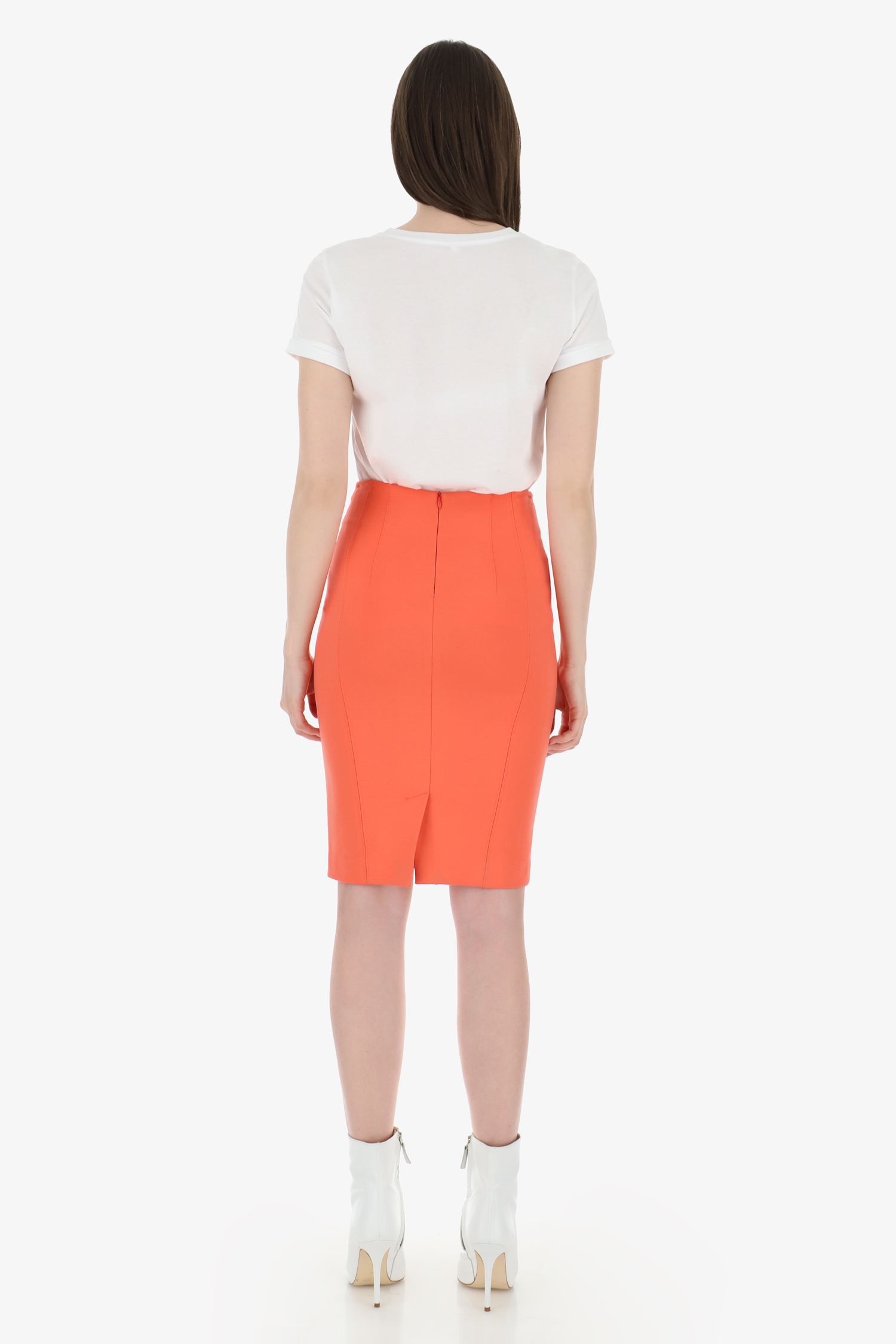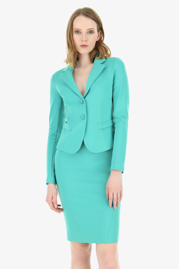 Юбка-карандаш классического кроя с высокой талией. Цвет - oceano (бирюзовый). Состав: 60% полиэстер, 35% полиамид, 5% спандекс.