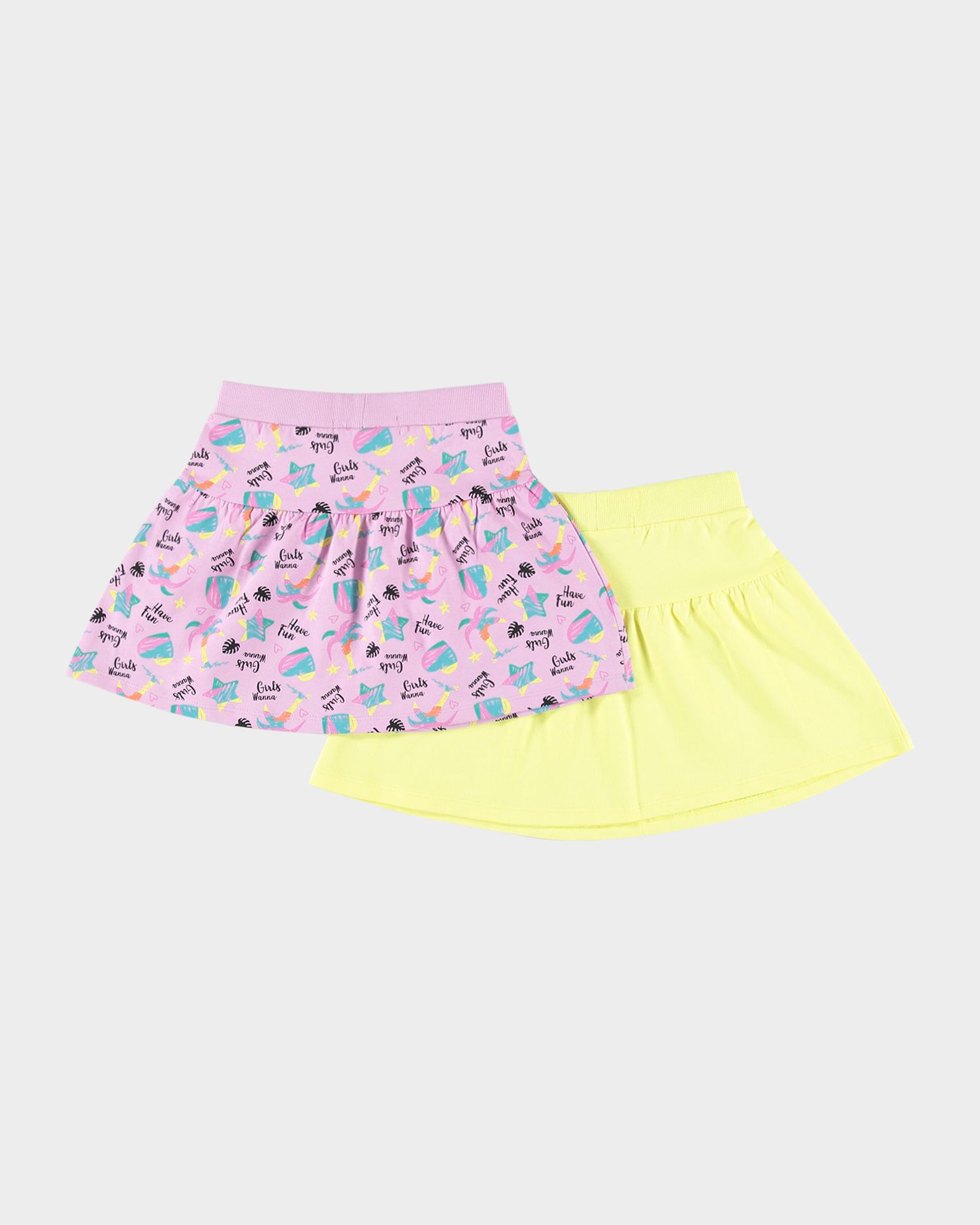 Комплект из двух узорчатых юбок для девочек с эластичным поясом с прикладным бантиком.
